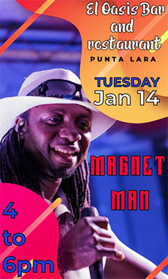 PUNTA LARA – Bij Bar Oasis in Punta Lara, een dorp aan de kust nèt buiten Nerja richting Torrox, treedt dinsdagmiddag 14 januari ‘The reggae rock star Magnet Man’ op. De bar is te vinden aan de Calle María 2.