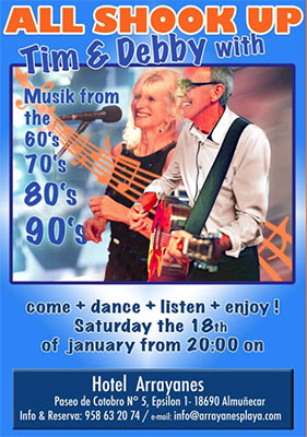 ALMUNECAR – In Hotel Arrayanes in Almuñécar staat zaterdagavond 18 januari een optreden geprogrammeerd van het Duo All Shook Up. Het optreden begint rond 20.00 uur.