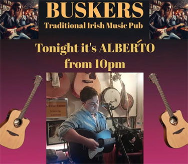 Gitarist en zanger Alberto Fer speelt bij Buskers Irish Pub