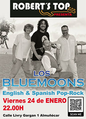 ALMUNECAR – In bar/restaurant Robert’s Top in Almuñécar staat vrijdagavond 24 januari een optreden geprogrammeerd van de formatie Los BlueMoons. Het optreden begint rond 22.00 uur en duurt tot circa middernacht.