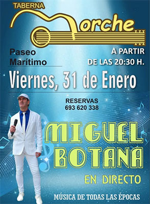 EL MORCHE – De Spaanse zanger Miguel Botana treedt vrijdagavond 31 januari op bij Taberna El Morche in de gelijknamige kustplaats aan de N-340 tussen Nerja en Málaga.