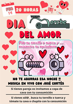 Het optreden begint om circa 20.00 uur, Taberna El Morche blijft de gehele nacht open ter viering van Valentijndag.
