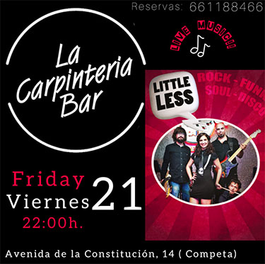 COMPETA – De formatie Little Less treedt vrijdagavond 21 februari op Bar La Carpinteria in het bergdorp Cómpeta.