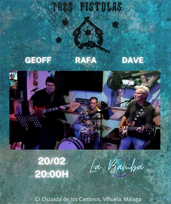 LA VINUELA – In bar La Bamba in het dorp La Viñuela, naast het gelijknamige meer (vijftien kilometer vanaf Torre del Mar landinwaarts gelegen), speelt donderdagavond 20 februari de formatie Tres Pistolas.