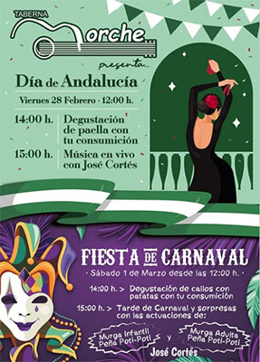 EL MORCHE – In de kustplaats El Morge (aan de N-340 tussen Nerja en Málaga) wordt vrijdag 28 februari de jaarlijkse Día de Andalucía gevierd. Vanaf 15.00 uur komt daarbij de Spaanse (flamenco)zanger en gitarist José Cortés in actie bij bar/restaurant bij La Taberna.