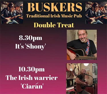 Ó´Cuínneagáin is vanaf circa 22.30 uur te zien en beluisteren, het optreden is gratis toegankelijk. Eerder op de avond, vanaf 20.30 uur, treedt de gitarist Shony op bij Buskers.