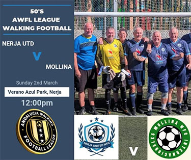 NERJA – Op het kunstgrasveld van het Parque Verano Azul in Nerja wordt zondag 2 maart een ´Walking Football´-competitiewedstrijd afgewerkt. In actie komen de thuisploeg Nerja United (50+) en de tegenstander Molina WFC.