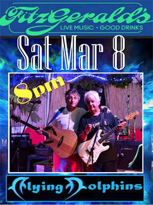 NERJA – De regionaal vermaarde en populaire band The Flying Dolphins speelt zaterdagavond 8 maart bij Fitzgerald’s Bar II in Nerja.