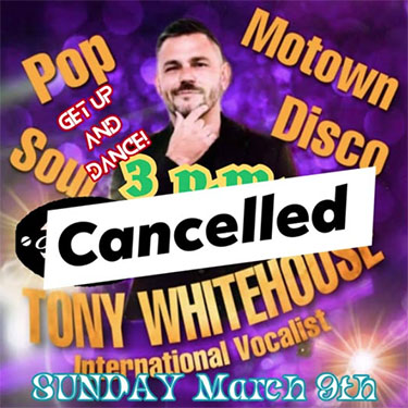 TORROX – Na de eerder al afgelaste evenementen is inmiddels ook het geplande optreden (zondagmiddag 9 maart, 15.00 uur) van de Britse zanger Tony Whitehouse bij O’Leary’s Irish Bar in de kustplaats Torrox afgelast vanwege de aanhoudende regenval.