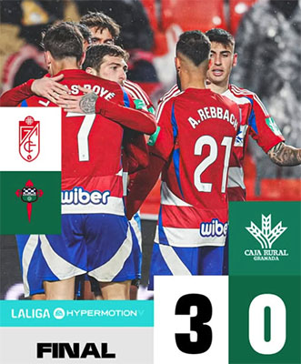 GRANADA – Subtopper Granada CF kende zondagavond 9 maart weinig tot geen problemen in de Segunda División-voetbalwedstrijd tegen Racing de Ferrol. De laagvlieger, voorlaatste in de competitiestand, werd met een 3-0 nederlaag huiswaarts gestuurd vanuit het stadion Nuevo Las Cármenes van Granada.