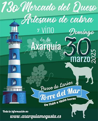 TORRE DEL MAR – In de kustplaats Torre del Mar is op zondag 30 maart de (vanwege de recente regen uitgestelde) dertiende editie van de jaarlijkse lokale Mercado del Queso (kaasmarkt, red.) te bezoeken.