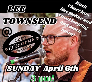 TORROX – De Britse zanger/gitarist Lee Townsend treedt zondagmiddag 6 april op bij O’Leary’s Bar aan de Paseo Maritímo de Ferrara in Torrox-Costa. Het optreden begint om circa 15.00 uur, de toegang is vrij.