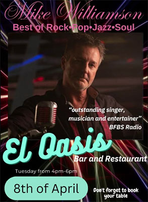 PUNTA LARA – Bij Bar El Oasis in Punta Lara, een dorp aan de kust nèt buiten Nerja richting Torrox, treedt dinsdagmiddag 8 april de zanger en gitarist Mike Williamson op. De bar is te vinden aan de Calle María 2.