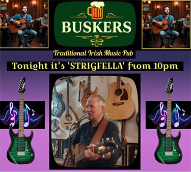 NERJA – De gitarist StringFella treedt woensdagavond 9 april op bij Buskers Irish Pub aan de Calle Antonio Millón in het centrum van Nerja.