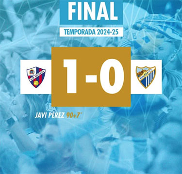 HUESCA – Voetbalclub Málaga CF beleefde maandagavond 14 april een fikse tegenvaller door diep in blessuretijd een verdiend gelijkspel in de uitwedstrijd tegen SD Huesca alsnog uit handen te geven. Javier Peréz-Mateo scoorde in de zevende minuut van de toegevoegde tijd alsnog de winnende treffer voor de thuisclub: 1-0.