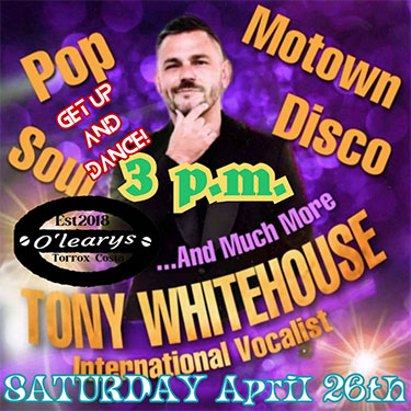 TORROX – De Britse zanger Tony Whitehouse treedt zaterdagmiddag 26 april op bij O’Leary’s Irish Bar in de kustplaats Torrox.