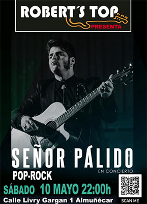 ALMUNECAR – Bij bar/restaurant Robert’s Top in Almuñécar treedt zaterdagavond 10 mei de gitarist en zanger Señor Pálido op. Het optreden begint rond 22.00 uur.