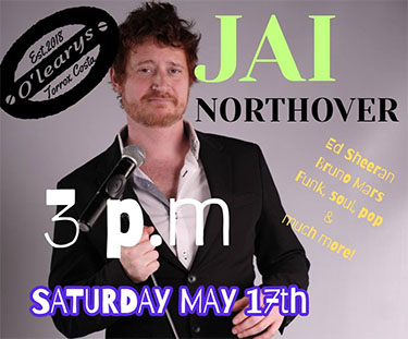 TORROX – De zanger Jai Northover treedt zaterdagmiddag 17 mei op bij O’Leary’s Bar aan de Paseo Maritímo de Ferrara in Torrox-Costa. Het optreden begint om circa 15.00 uur, de toegang is vrij.