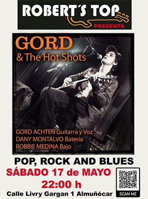 ALMUNECAR – In bar/restaurant Robert’s Top in Almuñécar staat zaterdagavond 17 mei een optreden geprogrammeerd van Gord and The Hot Shots. Het optreden begint rond 22.00 uur.