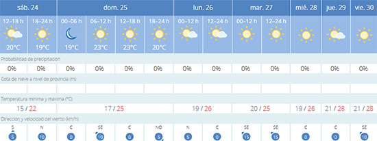 NERJA – De zomer maakt traditiegetrouw zijn entree rond Nerja en omgeving vanaf de viering van San Isidro (jaarlijks op 15 mei, red.). Ook dit jaar lijkt daarop geen uitzondering te worden gemaakt. De komende week stijgt het kwik tot gemiddelde dagtemperaturen die tegen de 30 graden Celsius aanhikken, al zal die grens slechts sporadisch worden geslecht.