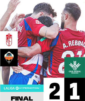 GRANADA – Op de voorlaatste speeldag van de Spaanse Segunda División heeft de Andalusische voetbalclub Granada CF een benauwde 2-1 overwinning behaald op het bezoekende CD Castellón. De beslissende en winnende treffer in het stadion Nuevo Las Cármenes van Granada viel pas in de voorlaatste minuut van de wedstrijd.