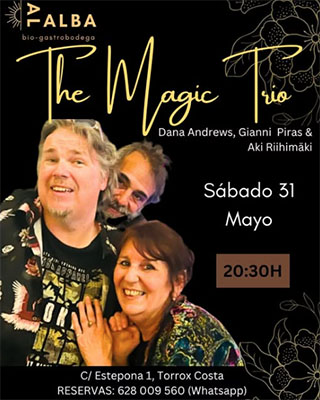 TORROX – In de kustplaats Torrox, op circa tien kilometer afstand van Nerja, treedt zaterdagavond 31 mei het Magic Trio op. Dit gebeurt bij bio-en gastrobodega Al Alba aan de Calle Estepona 1 in Torrox.