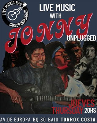 TORROX – Bij de live-music bar Carlos Unplugged in de kustplaats Torrox treedt donderdagavond 5 juni de artiest Jonny Unplugged op.