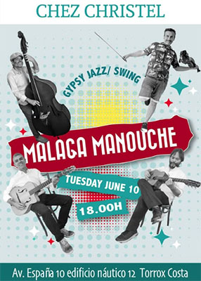 TORROX-COSTA – Bij bar Chez Christel in de kustplaats Torrox-Costa staat dinsdagavond 10 juni een optreden van de viermansformatie Malaga Manouche op het programma.