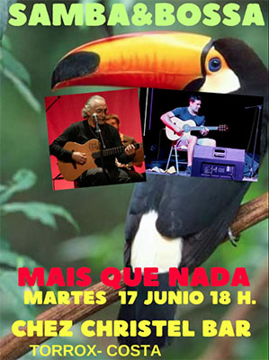 TORROX-COSTA – Bij bar Chez Christel in de kustplaats Torrox-Costa staat dinsdagavond 17 juni een optreden van het duo Samba & Bossa op het programma.