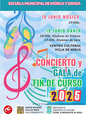 NERJA – De lokale muziek- en dansschool van Nerja, de Escuela Municipal de Música y Danza de Nerja, verzorgt op woensdag 18 en donderdag 19 juni eindejaarsuitvoeringen in het Centro Cutural Villa de Nerja aan de Calle Granada 45 in het centrum van de stad.