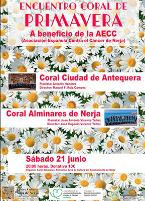 NERJA – De koren Coral Ciudad de Antequera en Coral Alminares de Nerja verzorgen op zaterdagavond 21 juni een benefietconcert voor de stichting AECC (Asociación Española Contra el Cáncer de Nerja) in het Centro Cutural Villa de Nerja.