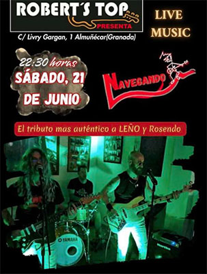 ALMUNECAR – Bij bar/restaurant Robert’s Top in Almuñécar staat zaterdagavond 21 juni een optreden geprogrammeerd van de formatie Navegando. Het optreden begint rond 22.30 uur.