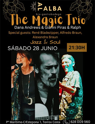 TORROX – In de kustplaats Torrox, op circa tien kilometer afstand van Nerja, treedt zaterdagavond 28 juni het Magic Trio op. Dit gebeurt bij bio-en gastrobodega Al Alba aan de Calle Estepona 1 in Torrox.