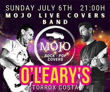 Band Mojo speelt bij Ierse pub O´Leary´s in Torrox TORROX – De coverband Mojo speelt zondagavond 6 juli bij de Ierse pub O’Leary’s in Torrox. Het optreden begint rond de kok van 21.00 uur. De Ierse pub is te vinden aan de Paseo Maritímo de Ferrara in de kustplaats Torrox. Delen: Klik om te delen op X (Opent in een nieuw venster) X Klik om te delen op Facebook (Opent in een nieuw venster) Facebook Vind-ik-leuk Aan het laden...