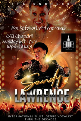 Optreden zangeres Sandy Lawrence bij Rockefeller in Nerja NERJA – De zangeres Sandy Lawrence treedt zondagavond 6 juli op bij Rockefeller by Fitzgerald´s, in het centrum van Nerja aan de Calle El Chaparil 7. Het optreden begint rond de klok van 22.00 uur. Delen: Klik om te delen op X (Opent in een nieuw venster) X Klik om te delen op Facebook (Opent in een nieuw venster) Facebook Vind-ik-leuk Aan het laden...