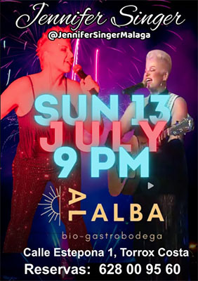 TORROX – In de kustplaats Torrox, op circa tien kilometer afstand van Nerja, treedt zondagavond 13 juli de zangeres Jennifer Singer op.