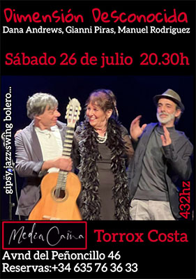 TORROX – Bij Chiringuito Medía Caña in de kustplaats Torrox treedt zaterdagavond 26 juli het Dimensión Desconocida Trío op. Media Caña is te vinden aan de Avenida del Peñoncillo 46 in Torrox, op circa tien kilometer van Nerja.