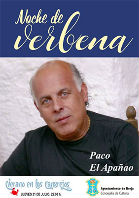 Het optreden van Paco El Apañao begint om circa 22.00 uur en staat in het kader van de reeks ‘Verano en Los Cangrejos’. Dit is een serie aan optredens met zangers, zangeressen, musici, bands, artiesten en dansgroepen die gedurende de maand augustus iedere avond zijn te zien en te beluisteren op het plein vlak naast het strand van Torrecilla in Nerja. De toegang is gratis.