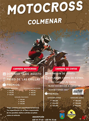 COLMENAR – In het bergdorp Colmenar, op zo’n dertig kilometer landinwaarts van Málaga gelegen, wordt op zondagavond 10 augustus een motocross verreden. Het evenement staat in het kader van het jaarlijkse dorpsfeest, waarin ieder jaar allerlei (sportieve) activiteiten op de rol staan.