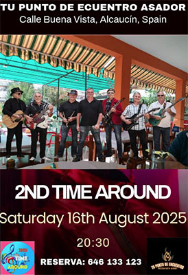ALCAUCÍN – Bij Tu Punto de Encuentro Asador in Alcaucín treedt zaterdagavond 16 augustus de band 2nd Time Around op. Het optreden begint om circa 20.30 uur.