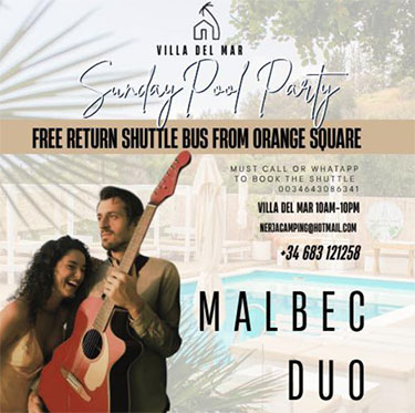 MARO – Het Malbec Duo treedt zondagmiddag 17 augustus op bij camping Villa del Mar in Maro (aan de kust naast Nerja gelegen). Het optreden is vrij toegankelijk, de show begint rond de klok van 13.00 uur en duurt tot circa 16.00 uur.