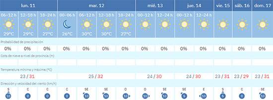 NERJA – De hoge temperaturen houden ook deze week aan rond Nerja en naaste omgeving. De meteorologen van het weerstation Aemet (Agencia Estatal de Meteorología) voorzien de komende dagen vooral véél zon, weinig wind en geen neerslag, zo blijkt uit de meest recente weersvoorspellingen.