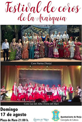 Aan het ´Festival de Coros de la Axarquá´ wordt deelgenomen door een reeks koren uit de Axarquía-regio. Zondagavond 17 augustus maken het Coro Narixa uit Nerja en het Coro Luz del Alba uit Torre del Mar hun opwachting.