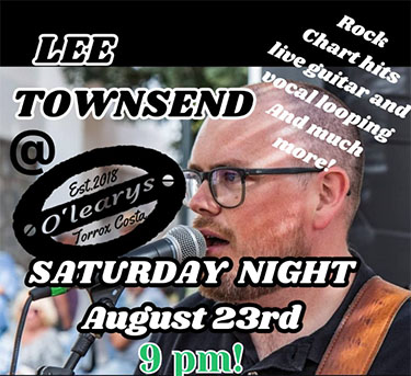 TORROX – De Britse zanger/gitarist Lee Townsend treedt zaterdagavond 23 augustus op bij O’Leary’s Bar aan de Paseo Maritímo de Ferrara in Torrox-Costa. Het optreden begint om circa 21.00 uur, de toegang is vrij.