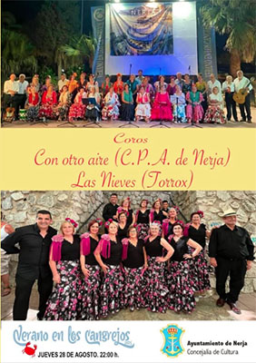 NERJA – Het uit Nerja afkomstige koor Con Otro Aire verzorgt donderdagavond 28 augustus het volgende optreden in de reeks ‘Verano en Los Cangrejos’, waarbij gedurende de maand augustus iedere avond een culturele activiteit is te beleven op het fraaie plein Plaza de Fábrica de los Cangrejos in Nerja.