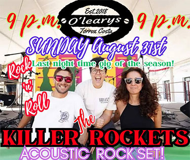 TORROX – De formatie The Killer Rockets speelt zondagavond 31 augustus in de kustplaats Torrox, op circa tien kilometer van Nerja gelegen. Dit gebeurt in O’Leary’s Irish Bar aan de Paseo Marítimo de Ferrara.