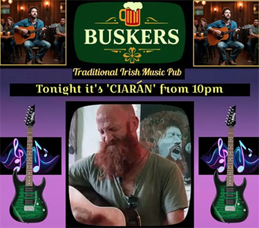 NERJA – De Ierse zanger en gitarist Cíarán Ó´Cuínneagáin treedt zondagavond 31 augustus op bij Buskers Irish Pub in Nerja. De bar is te vinden aan de Calle Antonio Millón in het centrum van de stad.