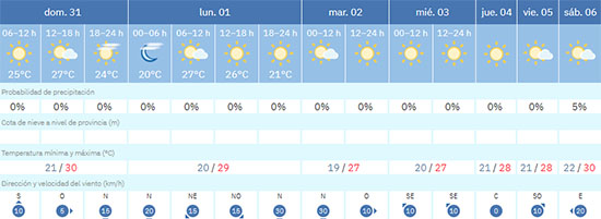 Zeker in het begin van de week is daarbij ook sprake van een toename van de wind, vooral op maandag 1 en dinsdag 2 september. Wél blijft de zon ook in de eerste week van september regeren over de Costa del Sol, van regen is zo goed als zeker de komende dagen géén sprake.