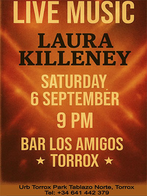 TORROX – In bar Los Amigos in de kustplaats Torrox treedt zaterdagavond 6 september de Britse zangeres en gitariste Laura Killeney op.