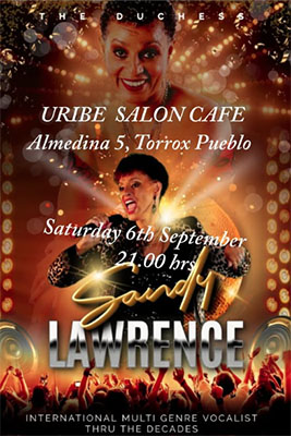 TORROX – Bij Uribe Salon Cafe in de kustplaats Torrox (een kleine tien kilometer onder Nerja gelegen) treedt zaterdagavond 6 september de zangeres Sandy Lawrence (aka ´The Duchess´) op.